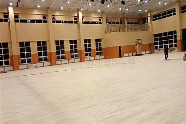 是單層龍骨結構45度斜鋪,楓木一等獨條籃球木地板,鋪設面積1955平米,現已鋪設完成結束驗收.