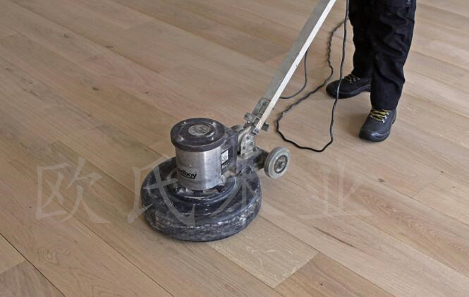 3、使用細(xì)砂型號(hào)的砂布進(jìn)行地板表面細(xì)磨;