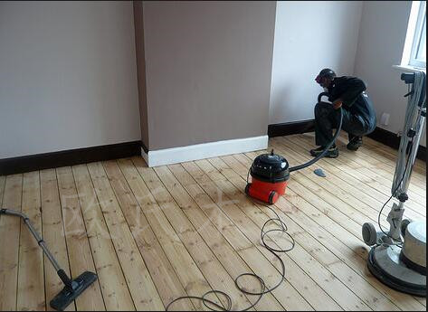 使用拋光機(jī)對(duì)運(yùn)動(dòng)木地板進(jìn)行拋光,并使用吸塵器對(duì)地板進(jìn)行清理。要求木地板表面無(wú)任何灰塵,墻邊、墻角等使用刷子和抹布進(jìn)行清潔。