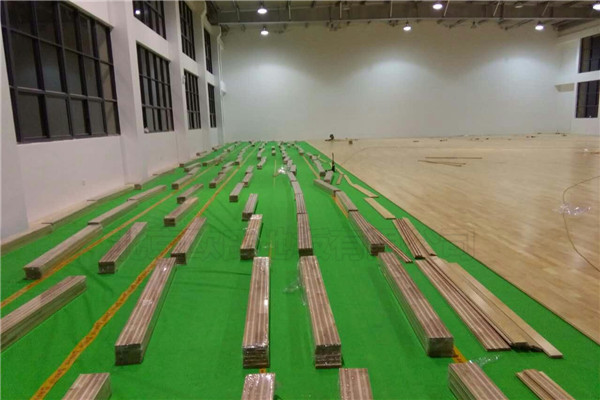 室內體育場館運動木地板在安裝鋪設之前,要先將地面抹平,如果地面坑坑洼洼對鋪設地板的難度很大,還有木地板是有實木制作的害怕潮濕,所以混凝土地面濕度大于3-4%應進行通風干燥;運動木地板上工作時要穿軟底鞋,以防劃傷面層;運動木地板底層墊塊、龍骨做好防腐處理,毛地板在生產過程中以對龍骨進行無色防腐處理,不需在涂刷防火防腐涂料;之后就是布局、定位、放線工作,再地面上彈出木龍骨位置的中心線;在安裝龍骨的時候要注意,必須安裝好彈性膠墊,彈性墊位置間距為400;在龍骨鋪裝時要注意和墻之間20-30mm的縫隙,用于通風、散潮氣,木板面層與墻之間亦應留有至少20mm的縫隙,要用踢腳板蓋住;鋪裝地板面層時,縫隙要嚴密,接頭位置錯開。